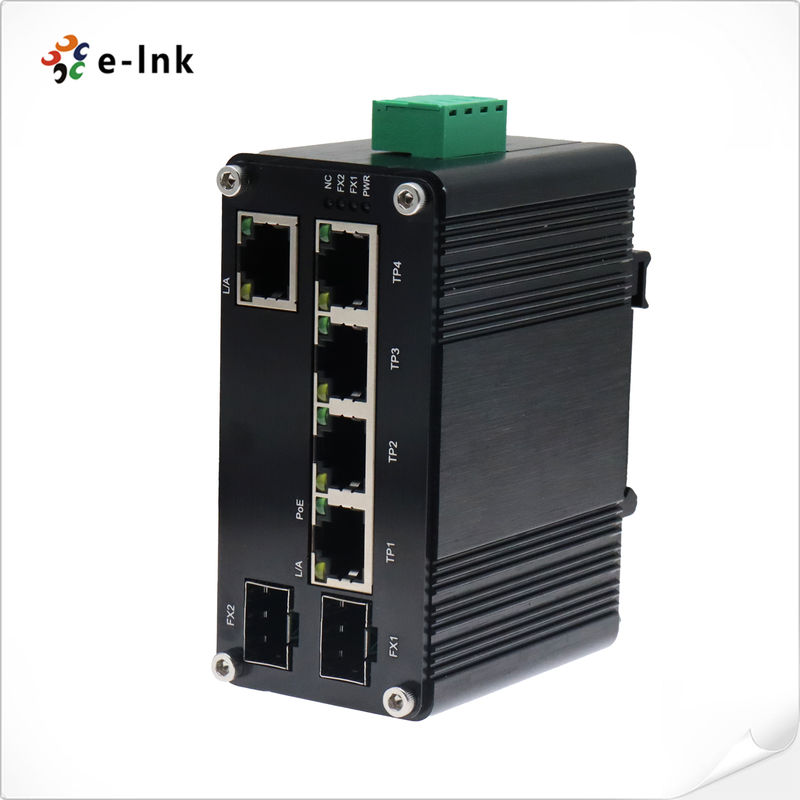 Commutador Ethernet industrial PoE alimentado con 5 puertos 10/100/1000T + 2 puertos 100/1000X SFP con PoE Passthrough