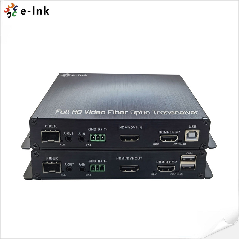distancias a través de un cable de fibra óptica, admite alta resolución hasta 1080P, KVM, RS232,