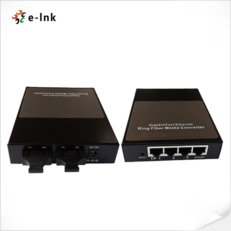 El convertidor de medios de la serie E-link LNK-R2300G está diseñado para satisfacer los requisitos de las redes de acceso de fibra múltiple. Proporciona 2 puertos de fibra 1000BASE-SX/LX y 3 puertos 10/100/1000BASE-TX RJ45,y un puerto de la consola, que proporcionan no sólo conexión de red de punto a punto, sino también señalar a la cadena de red multi-punto. It support WEB management and RSR (Rapid Super Ring) and has extend the transmission distance of a network from 100m over copper wires to 120Km (single-mode full duplex) and is applied to highway network system, sistema de comunicación de minas y otras redes multipunto en cadena.