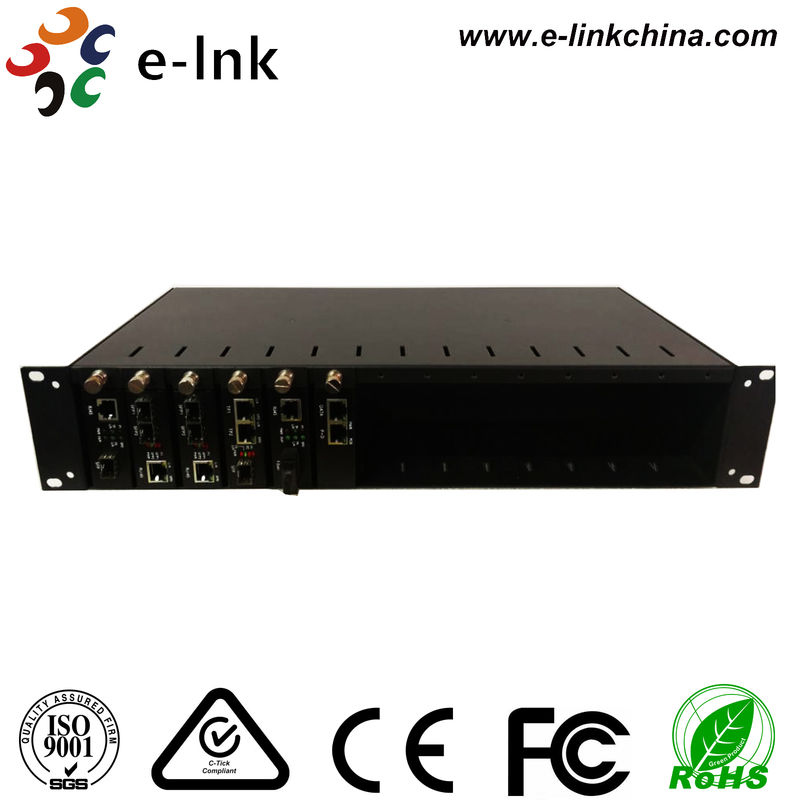 El chasis de montaje en rack con enchufes de CA de 14 ranuras y altura 2U está especialmente diseñado para alojar convertidores de medios basados en chasis u otros módulos. Es un chasis de montaje en rack estándar de 19 pulgadas y altura 2U que se puede montar en el rack estándar de 19 pulgadas. El chasis le permite instalar múltiples convertidores de medios en un rack de equipos junto con los dispositivos de red. Esto proporciona ahorro de espacio y el cableado tendrá un aspecto ordenado. El chasis funciona con todos los enchufes de salida típicos de CA de 110 V/220 V de 14 ranuras, por lo que no necesita fuente de alimentación de CA/CC ni ventilador de refrigeración. El diseño sin fuente de alimentación de CA/CC y sin ventilador de refrigeración aumentará en gran medida la fiabilidad del sistema.