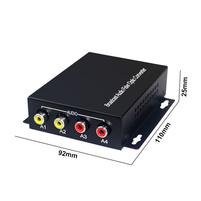 E-link Audio RCA bidireccional de 2 canales sobre convertidor de fibra óptica para audio CCTV y transmisión de audio AV de grado profesional a través de fibras monomodo y multimodo a distancias de hasta 20 km y más. Soporta 2 canales bidireccionales audio con calidad de transmisión codificado digitalmente de 24 bits a través de una fibra óptica multimodo o monomodo. Estos transmisores de fibra óptica y receptores de fibra óptica se utilizan normalmente en aplicaciones para alquiler, puesta en escena, teatro, estadios, parques temáticos, transmisión/estudio, audio CCTV y aplicaciones AV profesionales, etc., y están disponibles para instalaciones independientes o montadas en rack.