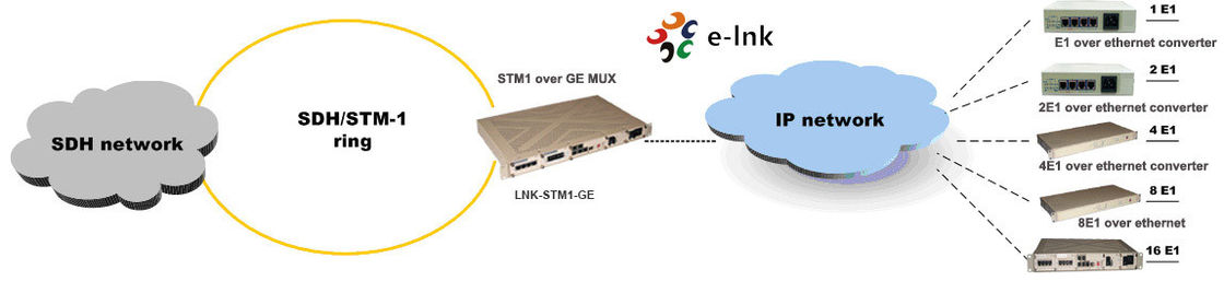 LNK-STM1-GE Realiza el servicio STM-1 sobre Gigabit Ethernet, que es una solución rentable para la migración de los servicios de telecomunicaciones tradicionales a la red de paquetes IP. LNK-STM1-GE adopta la innovadora tecnología TDM sobre IP, con emulación de circuito IP que soporta el transporte de 1xSTM-1 (63 E1/VC-12) sobre puerto GE.