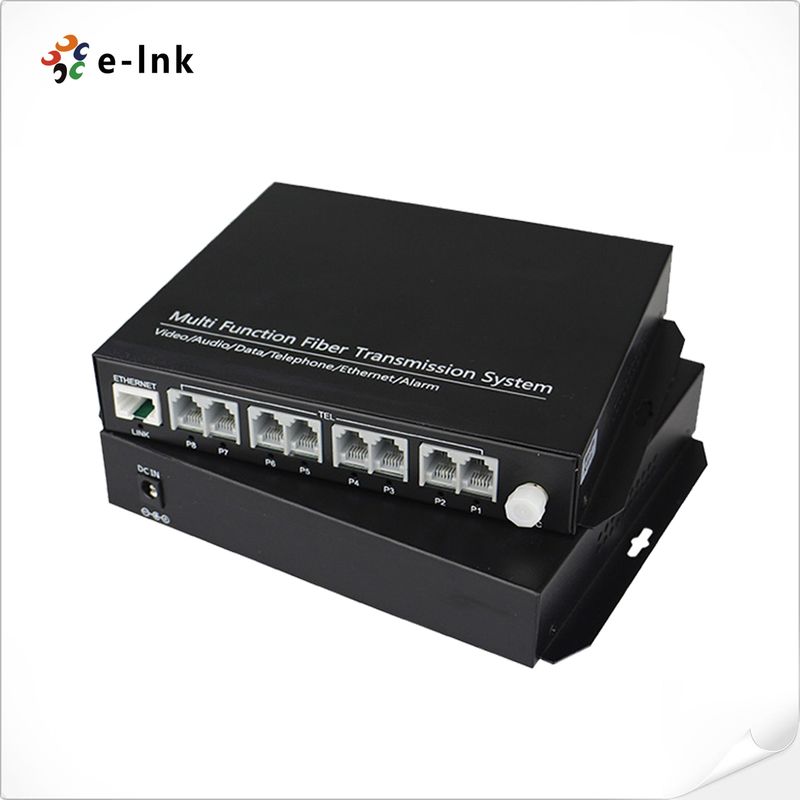 Convertidor de teléfono analógico a F/O:8- Ch Líneas telefónicas (FXO y FXS) + 1-Ch 100M Ethernet, FC, Modo único ((9/125μm), 20KM, DC12V, utilizado por parejas |